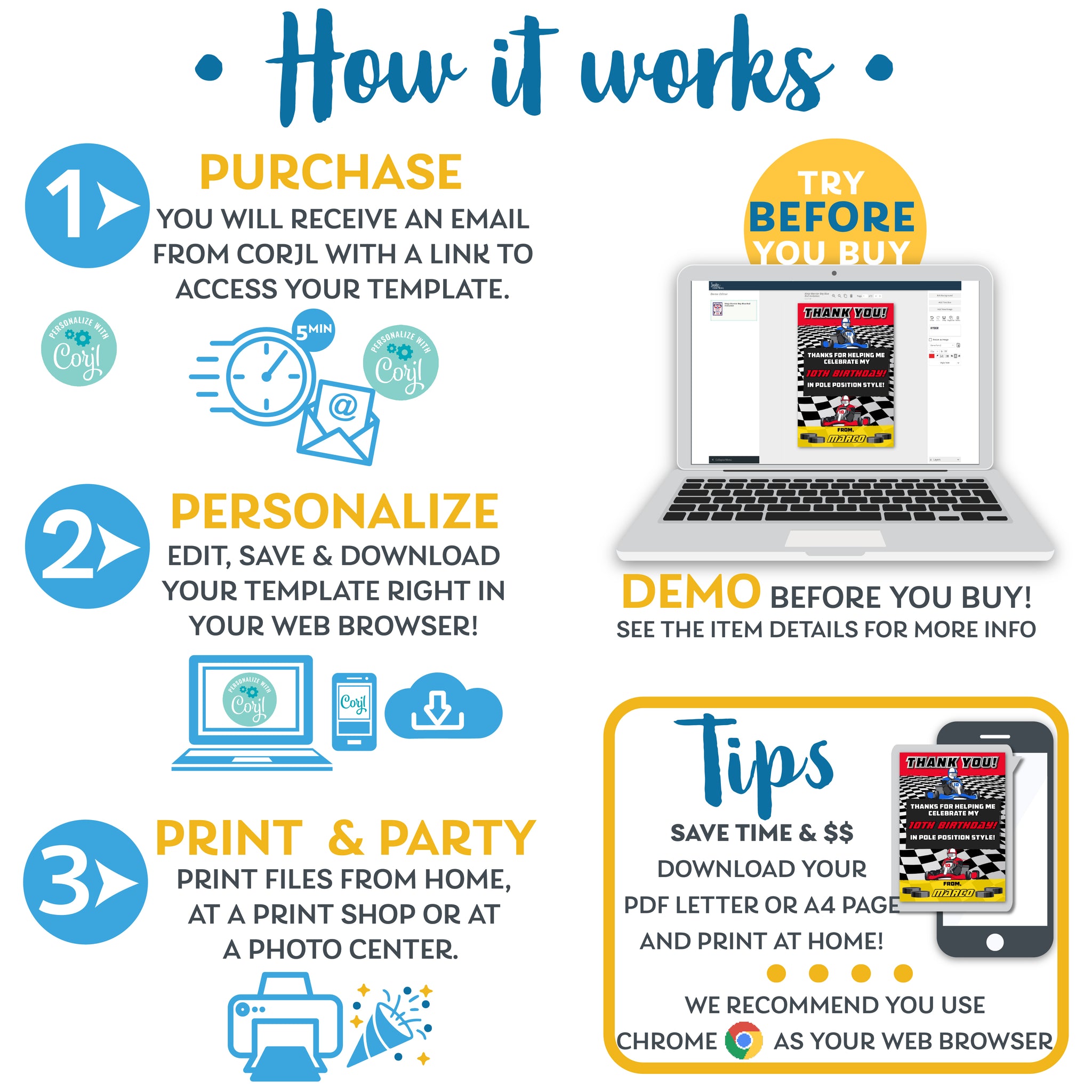- No software download required, start editing online within minutes of placing your order through Corjl's easy personalization web platform.